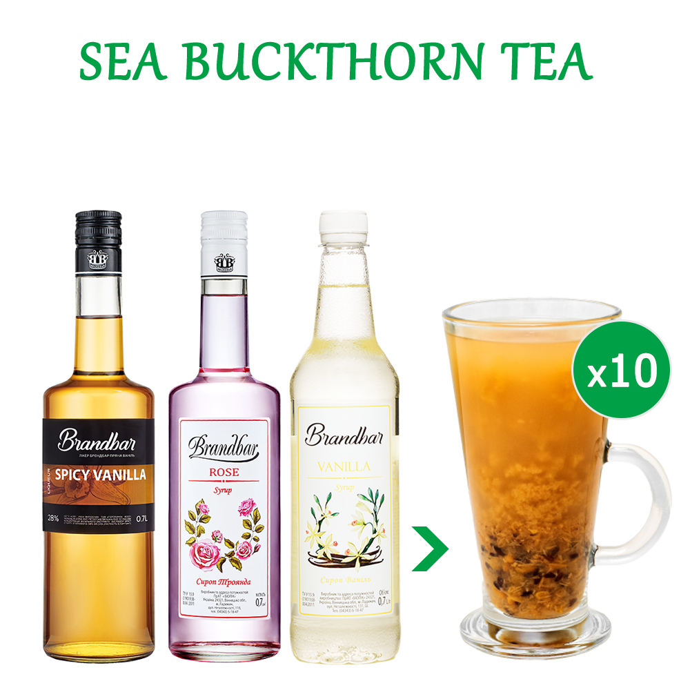 Method: подавить мадлером ягоды облепихи. Добавить остальные компоненты и разогреть до 80 градусов. Подавать с курагой и миндалём.